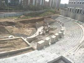 精品廊36栋建筑及人防车库施工完成,16#楼室内装修完成;25#楼室内装修,吊顶龙骨安装完成,吊顶基层完成,两侧配房室内装修正在施工;精品廊已有7户商家签订租用合同;主路面层石材铺装完成30%;广场地面石材铺装完成70%;天然气管道沟,沿旱河主管道安装、回填完成;西侧沿旱河绿化带种植土换填、平整完成。