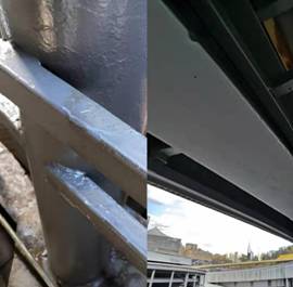 10月28日下午,审计小组又进行了第五次现场检查。本次检查主要查看演出剧场钢结构第一遍漆面处理效果,通过现场检查发现第一遍面漆涂刷后,除钢结构表面有些凹凸不平外,其他效果良好。目前除锈除漆工程正在紧锣密鼓开展。