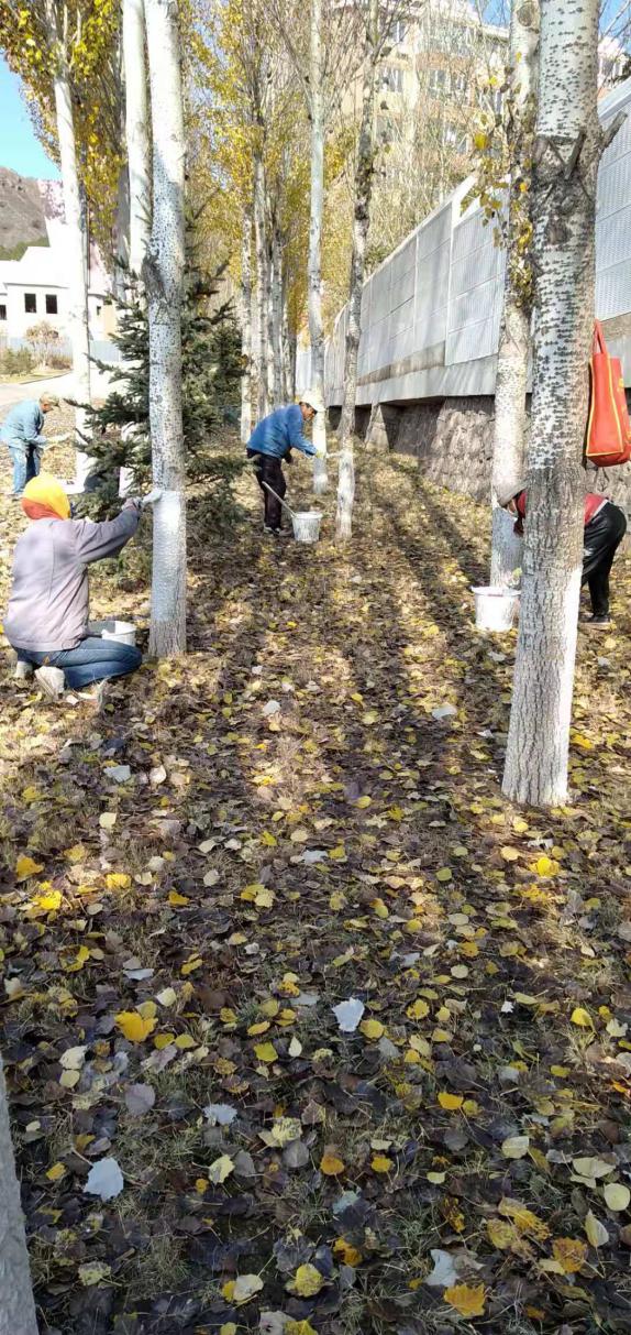 秋风萧瑟,枯黄的树叶随着萧萧的寒风,纷纷投入到大地母亲的怀抱。为确保来年所有植被良好生长,保障绿植成活率,基建部根据两年来绿化苗木栽植情况,自9月底开始,就积极为植被越冬做好准备。