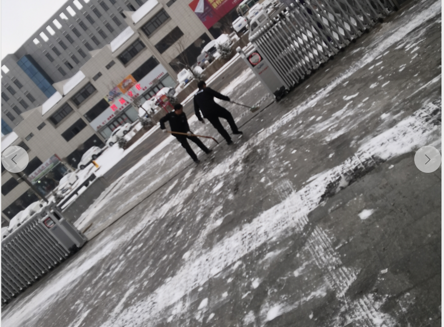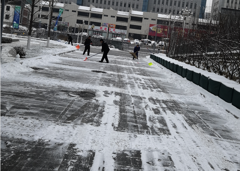 11月30日,经过昨晚降雪洗礼后的鼎盛公司更加动人,早上八时许,我行政部由当班保安3名、前台值班1名、办公室值班1名临时组成的“扫雪志愿团”便活跃在了公司大门口及各主干通道,开始为扫雪除冰忙碌着…