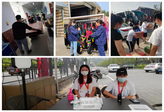 为减少细菌滋生,规范园区环境管理,演艺中心各部门积极行动,全面开展演出现场及宿舍马场的卫生清理工作。技术部陆续对各类设备进行翻新维护除尘,更换机器配件。集中组织检查山体电缆,维修山体灯光。为合理利用空间,视频库房内搭建二层平台,以满足设备有序存放。服装道具组加紧维修进度,晾晒演出服饰,集体对可水洗服装、帽子、旗面予以清洗。事务部严查园区纪律卫生,为员工发放饮品,配合行政部统计中心各部门员工核酸及疫苗接种情况。
