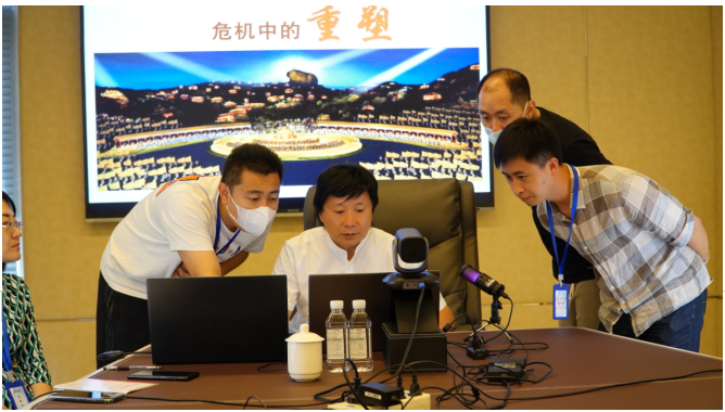 疫情是全人类的考题,中国给出了最佳答案。和其他行业一样,中国文旅行业勇于担当,致力于贡献自己的一份力量!把危机变成转机,是每一个文旅企业都必须面对的问题。2022年7月3日下午13:30,中国旅游演艺联盟、鼎盛文化产业投资有限公司共同发起《疫情下文旅演艺的纾困与重塑》线上研讨会,首次以线上直播的形式,在公司大会议厅成功举办。公司总裁梅洪主导了本次研讨会。