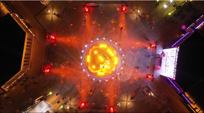 其次是融合古代与现代多种文化元素,以元宝街区古色古香的中式建筑为调色板,用灯光倾情渲染出各种美轮美奂的“巨幅楼体投影秀”,一秒钟将游人带入时空穿梭般的奇幻世界。