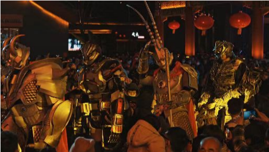 在丰富和创新灯光秀的同时,本届灯会以弘扬民俗文化、引领文化自信为宗旨,将南派舞狮、海城高跷、铜梁龙舞等非遗项目搬到了现场,把灯会现场变成了中华非遗的大型T形台,为广大游客端上了一桌热气腾腾的“年夜套餐”。承皇家灯会之势,今春元宝街.光影演艺秀根据下一轮时令变化,同时关注大众娱乐口味,设备上新、节目上新、互动上新!看点多多,花样多多,精彩持续加时,将欢乐与活力拉满整个春天!
