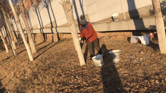 今年我公司的绿化工作,在公司领导的大力支持下,在全体养护人员的共同努力下,无论是花草还是树木,长势比较良好。为确保来年开春所有植被的良好生长,保障绿植的成活率,近期基建部绿化人员正在给公司植被做冬季防护措施。