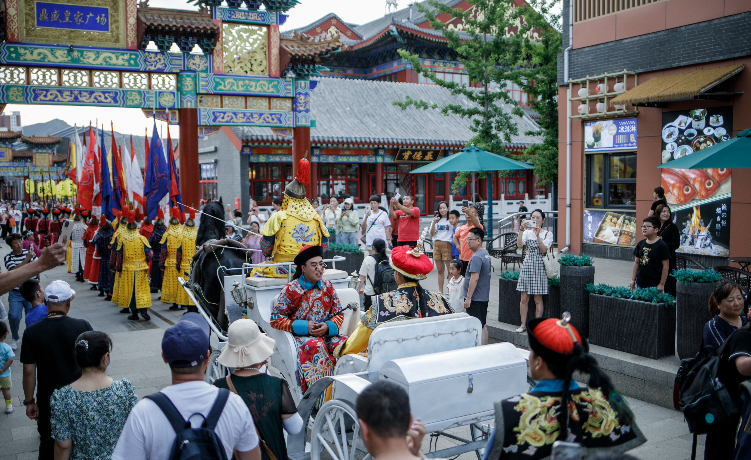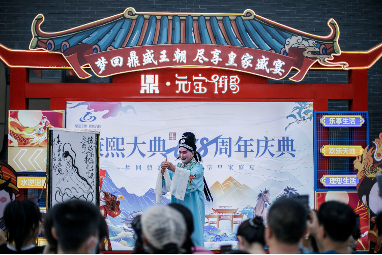 盛夏如花,草木正茂,六月是奔赴的季节,值得来一次说走就走的旅游!今日6.18恰逢《鼎盛王朝·康熙大典》实景演出周年庆,鼎盛文化产业园区人潮涌动、群贤毕至,热闹非凡!鼎盛以场景取代风景,以休闲取代观光,在元宝街倾心打造了一台文旅新场景盛宴,呈上一系列丰富多彩的活动,包括:皇家巡游、街舞快闪、动漫快闪、网红水雾门古风舞蹈秀、华服免费穿和文创市集等丰富的环节,带游客穿越历史,感受皇家气派,体验现代与传统的完美交融。