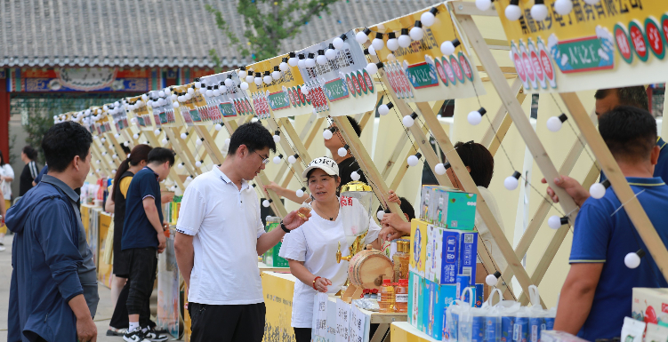 “皇家古韵,数智承德”电商文化节以元宝街为“舞台”,阿里巴巴数字乡村事业部邀请到了淘宝直播头部主播:淘宝百亿补贴美食家、承德本地知名主播:抖音平台源哥言商、快手平台:水果利歌等现场直播,也有承德电商产业园孵化的30位达人主播活动现场边逛边播,面向全国推介承德市优质文旅资源及特色商品,营造承德市电商直播氛围。当天元宝街还专门开辟商家展销及消费者互动区,引导游客现场打卡、参观、体验、购买,带领游客“高水准”的沉浸式体验。