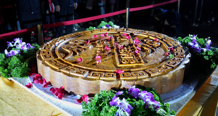 活动的另一个亮点是巨型月饼的免费品尝。金黄的外皮散发着浓郁的香气,内馅丰富多样,口感鲜美。无论是老人、孩子还是年轻人,都纷纷排队品尝这份中秋的美味。