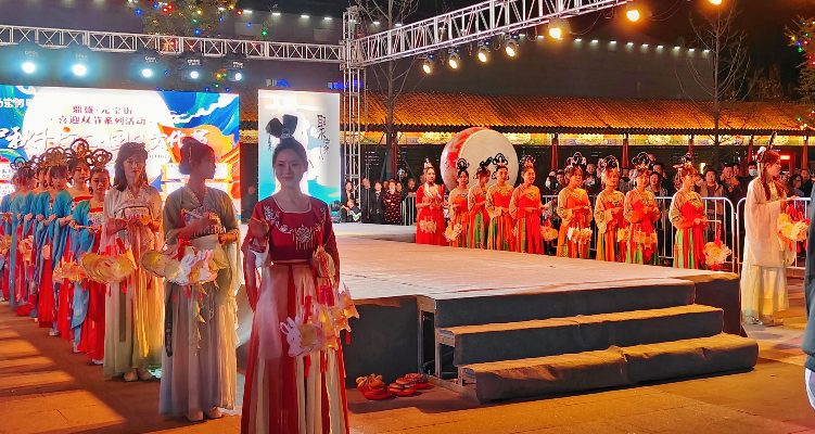 夜幕降临,一轮明亮的圆月升起,舞者们身着华美的汉服,在月光下翩翩起舞,嫦舞蹈舞姿优美动人,令人陶醉其中;拜月仪式中,人们拜月祈福。流传千年的习俗又在中秋的夜晚展现在大家眼前,流传千载的不只有传统文化,还有对于团圆美好的祝愿。