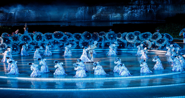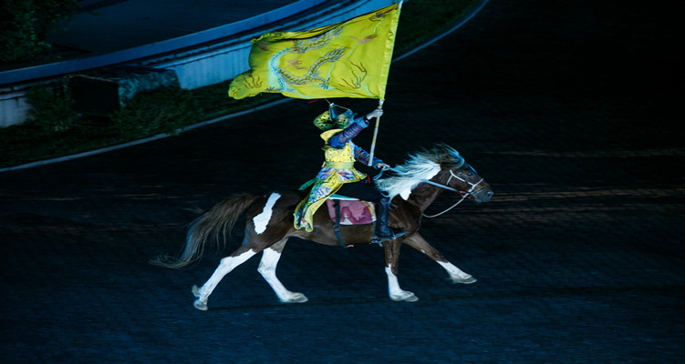 《鼎盛王朝·康熙大典》作为承载着承德的壮丽历史和深厚文化底蕴、演绎康熙大帝传奇经历的大型户外实景演出。背依独具特色的丹霞地貌景观及周围的山脉走势,由百余名演艺人员借助高科技灯光特效,真山真水,真人真马再现木兰秋狝、修建避暑山庄及周围寺庙、巡视江南、收复国土等壮观场景。让观众置身其中,瞬间“穿越”到康熙年间,深度体验演出独有的震撼与恢弘。