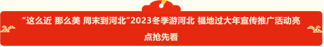 为吸引更多游客来河北观光旅游、休闲过年,进一步丰富河北冬季旅游产品供给,塑造河北亮点纷呈的冬季旅游新形象,1月16日,由河北省文化和旅游厅主办,河北广播电视台、河北旅游投资集团股份有限公司、中青旅联科(北京)数字营销有限公司共同协办的“这么近 那么美 周末到河北”2023冬季游河北福地过大年宣传推广活动在北京盛大启幕。