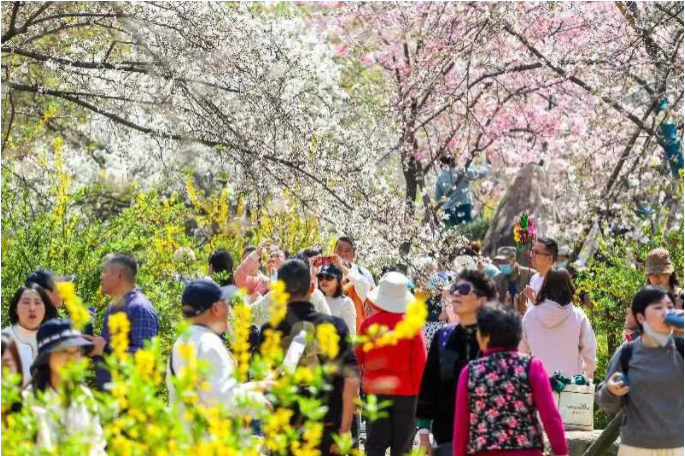 “上周,我和老伴去河南南阳玩了一圈,那里鸟语花香、文化氛围浓,尤其是谢庄镇塔子山的梅花开得真美。听旅行社的工作人员讲,当地还有月季节、樱花节等活动,反正我们退休了也没啥事,行程也不累人,就多住几天,慢慢看、养养心。”66岁的湖北游客彭女士说。