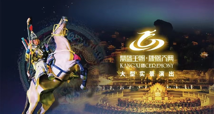 大型实景演出《鼎盛王朝·康熙大典》是全球首部皇家文化主题,演绎康熙大帝传奇经历的大型户外实景演出。整场演出以承德独特的自然元素和人文元素为创作基础,汲取康乾盛世时期的历史脉络与皇家文化元素,让观众在高科技声光电舞台效果的感染下、在激动不已的情感中穿越百年历史时空,以气势恢弘的大手笔、规模震撼的大制作、波澜壮阔的大视野,全面展示清王朝最鼎盛时期的历史风貌及人文情怀,以最精彩的形式表现康熙大帝辉煌的一生。《鼎盛王朝·康熙大典》自2011年6月公演以来,累计演出1749场,接待游客近240余万人次,综合收入5.42亿元。先后获得了“国家文化创意产业示范基地”“全国五一劳动奖状”等诸多荣誉,已成为河北旅游市场的一张亮丽名片。