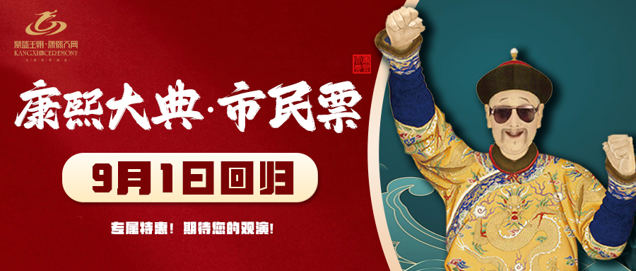 尊敬的游客朋友: 为积极响应承德市双滦区文化惠民工程号召,2024年9月1日起大型实景演出 《鼎盛王朝·康熙大典》启动市民票,将对承德市身份游客实行88元优惠票,市民可持身份证到购票窗口或搜索“鼎盛王朝·康熙大典”小程序购买。衷心感谢您的支持、关注与理解! 鼎盛文化产业投资有限公司 2024年9月2日 ...